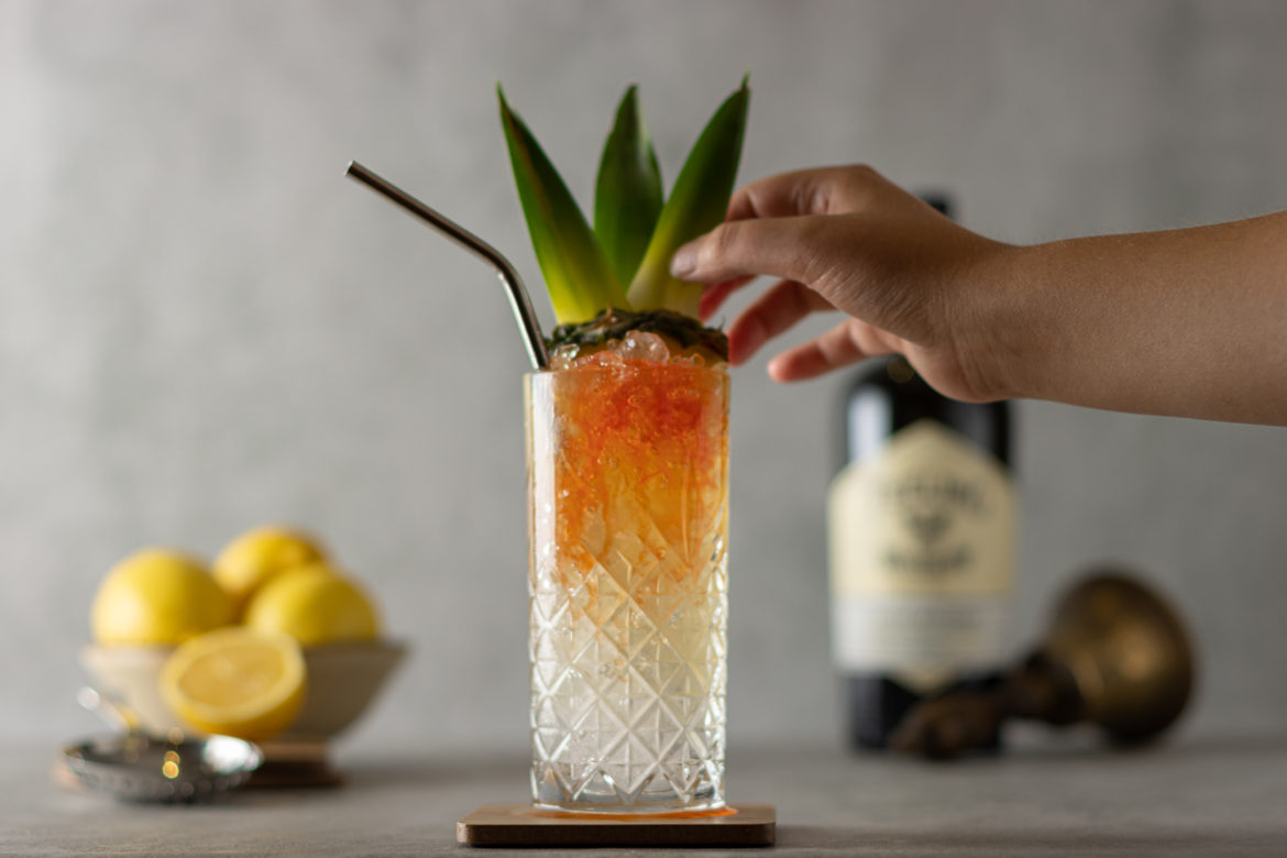 By serving the Teeling Mai Tai in a traditional highball, you can really see the gradient colour change from a burnt-orange to yellow to white. We decided to garnish the cocktail with a wedge of pineapple and three pineapple leaves, which results in quite an impressive visual!