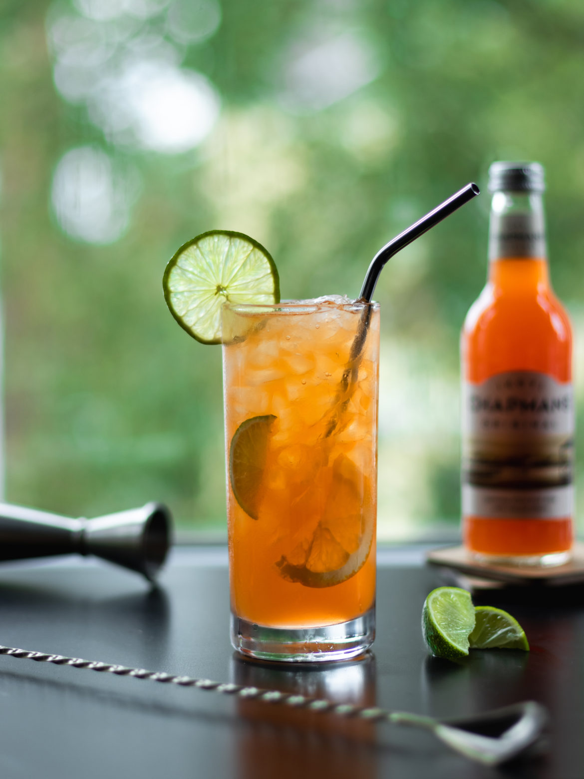 - Strain into your highball over the ice, filling it just over halfway.